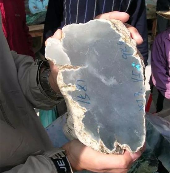 今天小编给大家介绍这块料子个头非常大,种地属玻璃种的,莫西沙场口,水头十足,还有点雪花棉。