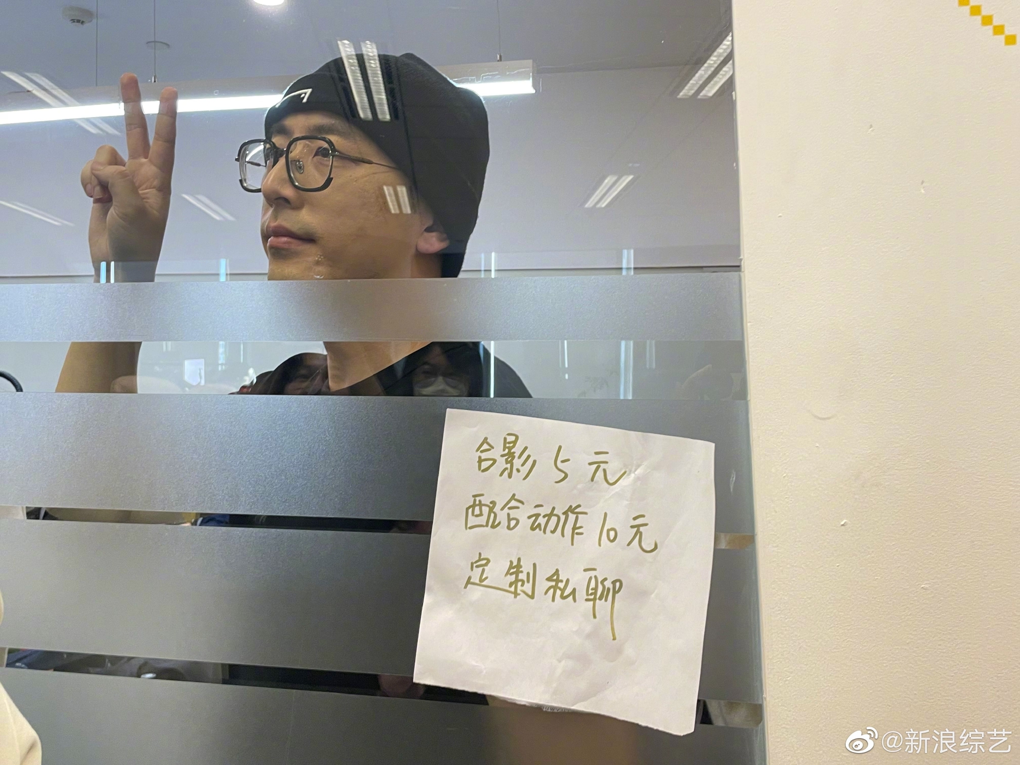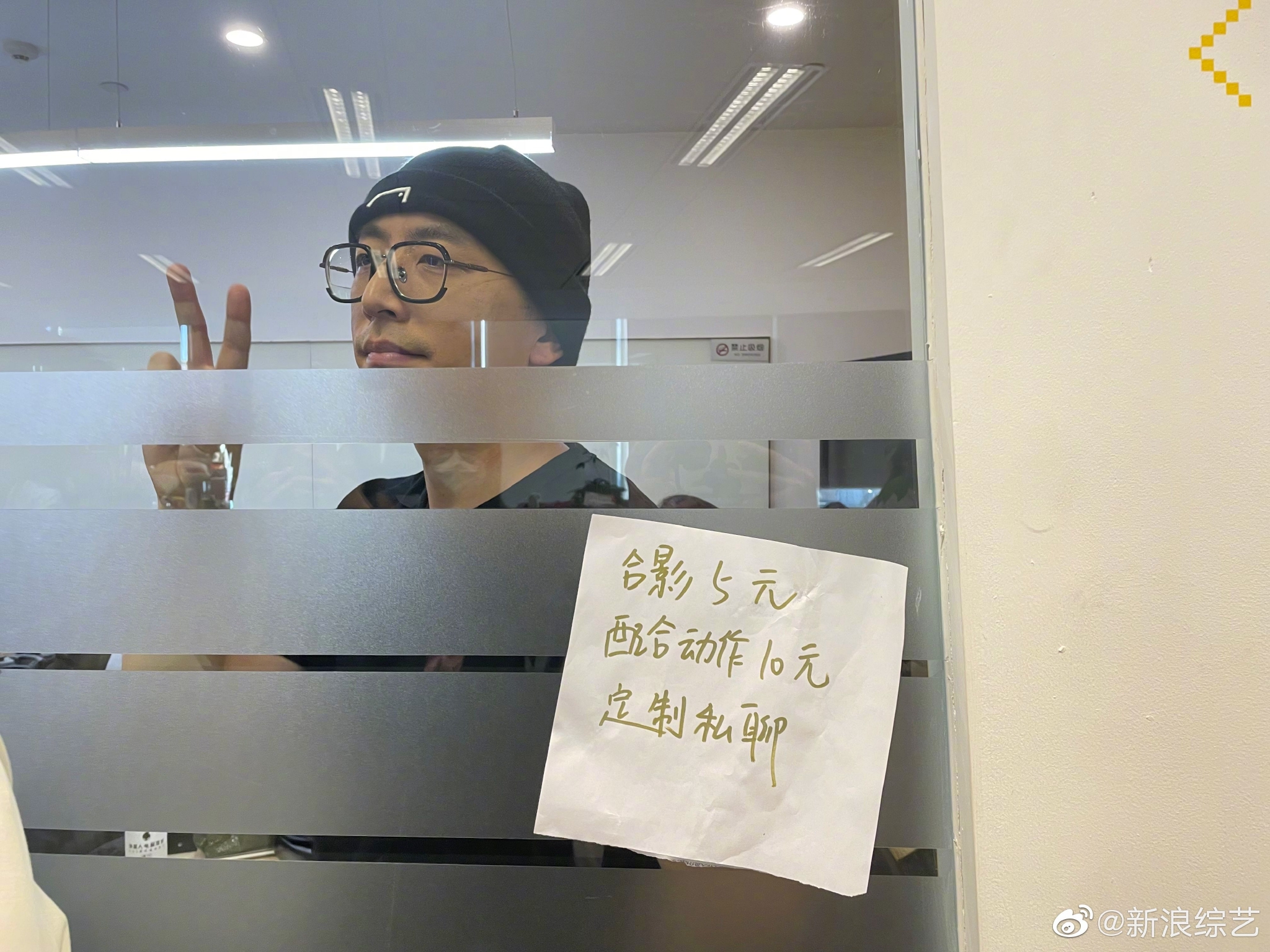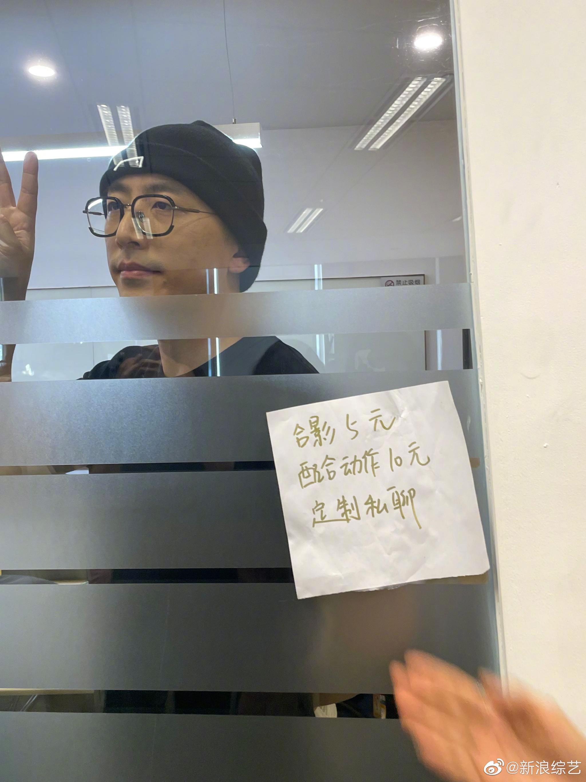#万茜白客新浪扫楼##白客把自己当人形立牌了# 今天的扫楼中,白客隔着玻璃耐心地配合房间外工作人员的合影,见过纸质的立牌,这么配合的人形立牌却是活久见hhh!#白客吃柠檬一秒变表情包#