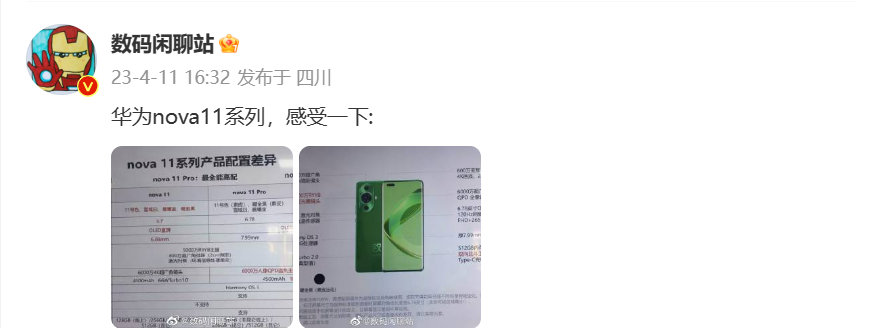 【华为 nova11 系列机型配置曝光:全系昆仑玻璃、Ultra 支持北斗卫星通信】华为在4月10日官宣,将于 4 月 17 日 14:30 召开华为 nova11 系列及全场景新品发布会。数码博主 @数码闲聊站 曝光了华为nova11系列配置信息,全系采用昆仑玻璃,Ultra版本……详情点击: