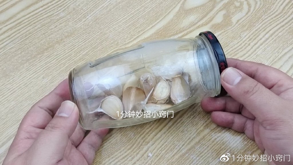 第二个用途,家里面的大蒜,保存不当很容易出现发芽干瘪的情况,我们就可以把大蒜掰出来,装到玻璃瓶里面保存,大蒜放置久了,进入休眠状态,只要环境温度湿度合适,就会出现发芽的情况,现在装到玻璃瓶里面,就可以隔离外界的空气,湿气,防止大蒜发芽。