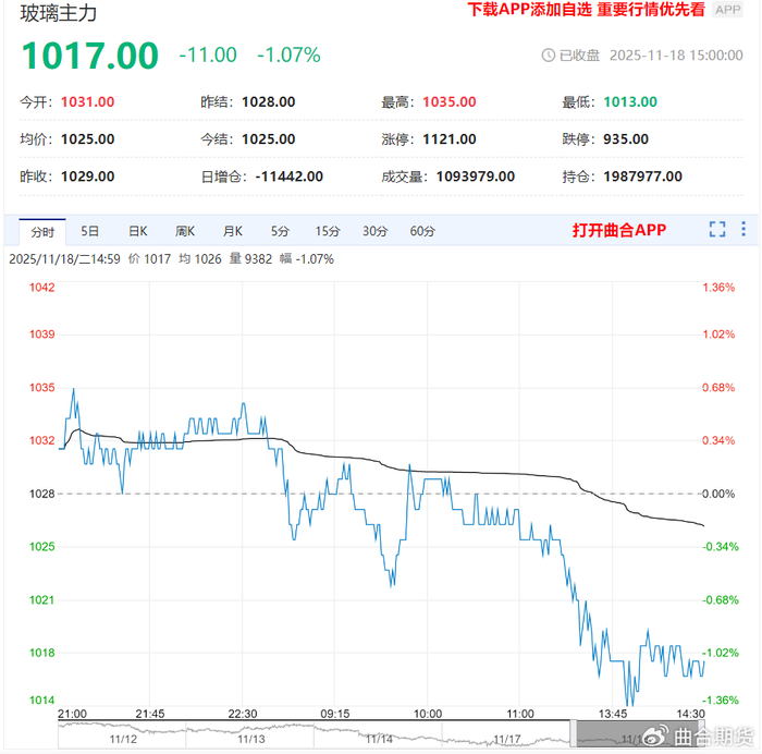 11月18日收盘,玻璃主力合约下跌1.07%,收于1017.00元/吨。11月以来,有4条燃煤产线集中停产,同时1条前期点产线开始出玻璃,使得周开工率和周供应量环比出现下降 。从长期来看,政策已停止新批产能,新建项目需进行产能置换,这在一定程度上限制了边际供应的增长。然而,玻璃下游需求疲软未改变,需关注年底竣工高峰期对玻璃的需求情况,库存仍在高位,玻璃整体供需偏弱,短期建议底部震荡思路对待。