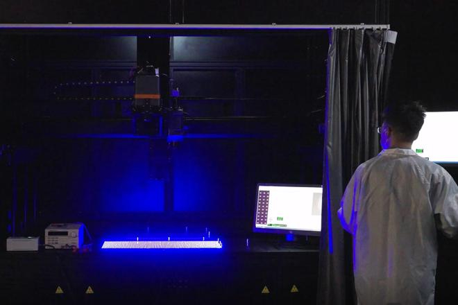 康宁技术专家在位于上海的康宁玻璃创新体验中心实验室进行光学测试